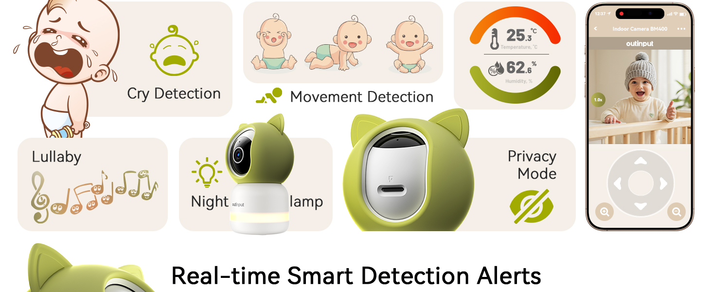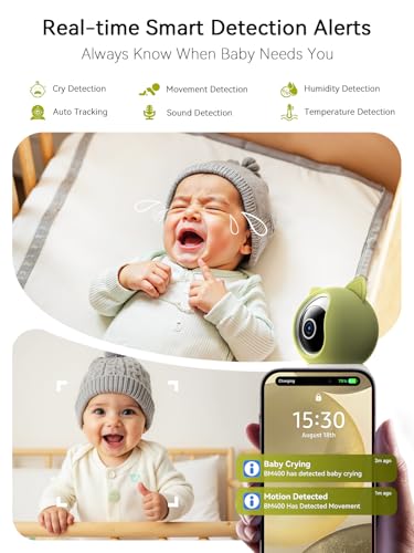 - 【Real-Time Detection & Notification】With this baby camera, you can receive instant alerts for baby crying, movement and sound. Also support room temperature/humidity detection. Provides around-the-clock protection and peace of mind