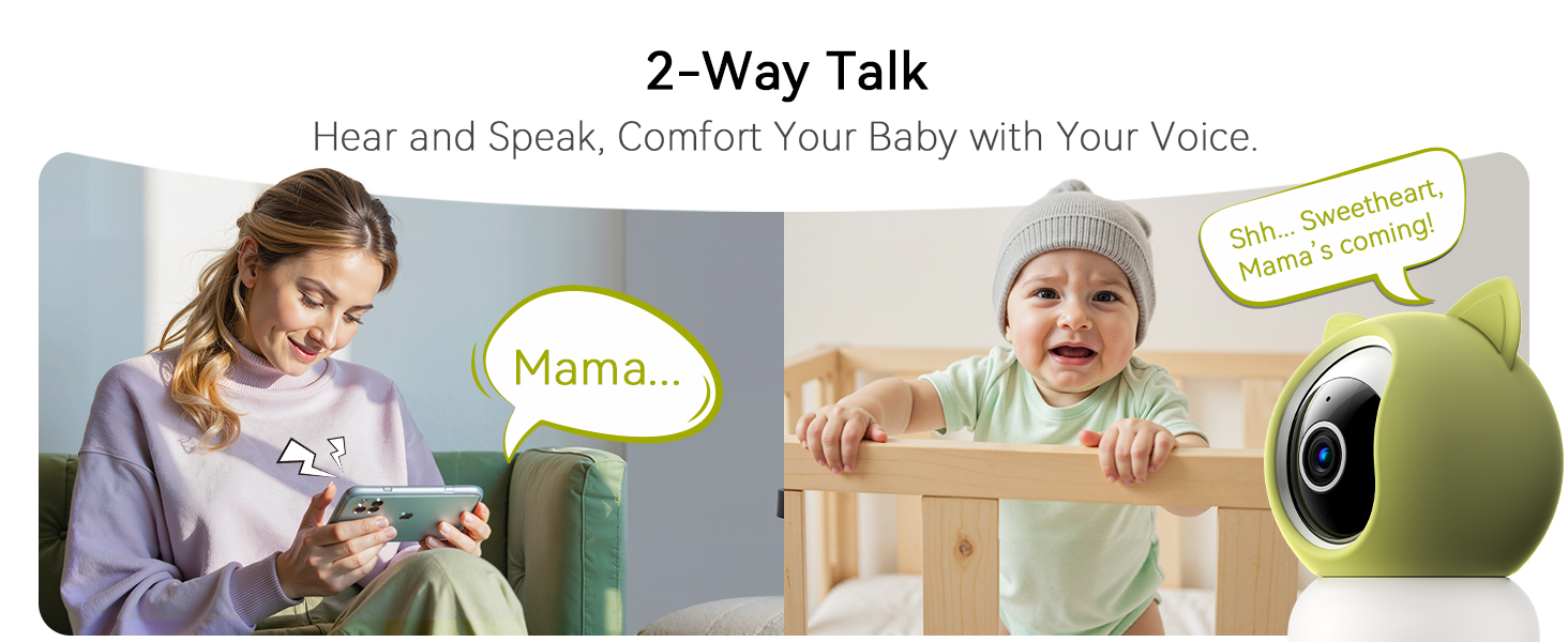 - 【2-Way Talk & App Control】This 2.4G wifi camera baby video monitor with built-in microphone and speaker, support clear 2-way audio and manage settings effortlessly via a user-friendly app, keeping you in touch with your baby anywhere, anytime whether you are at work or out at night
