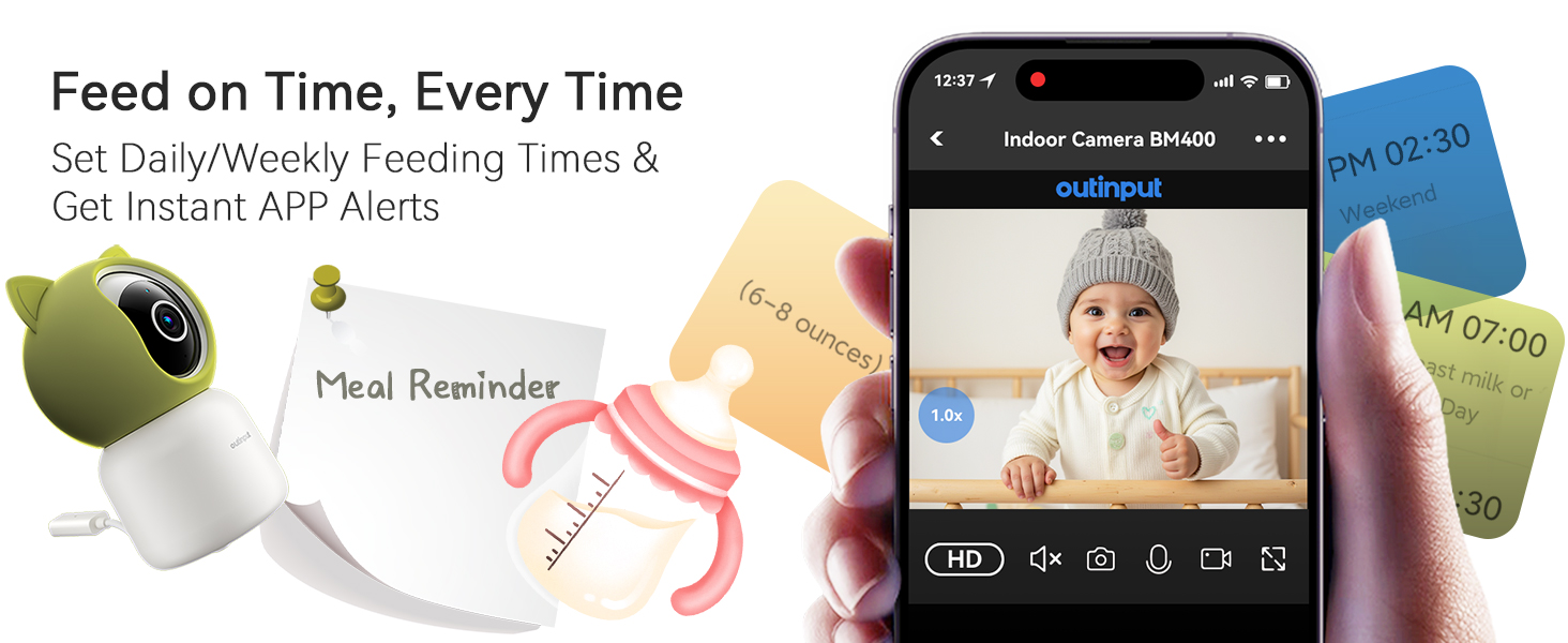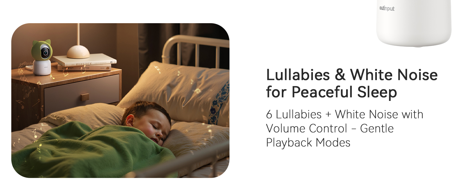 - 【Baby Smoothing Music & Feeding Alerts】The wifi baby monitor camera provide 6 lullabies & white noise for choose to help your baby relax, with adjustable volume to create a calming sleep environment. Customize daily or weekly feeding alerts through the app of the baby cam to ensuring your little one's needs are always met