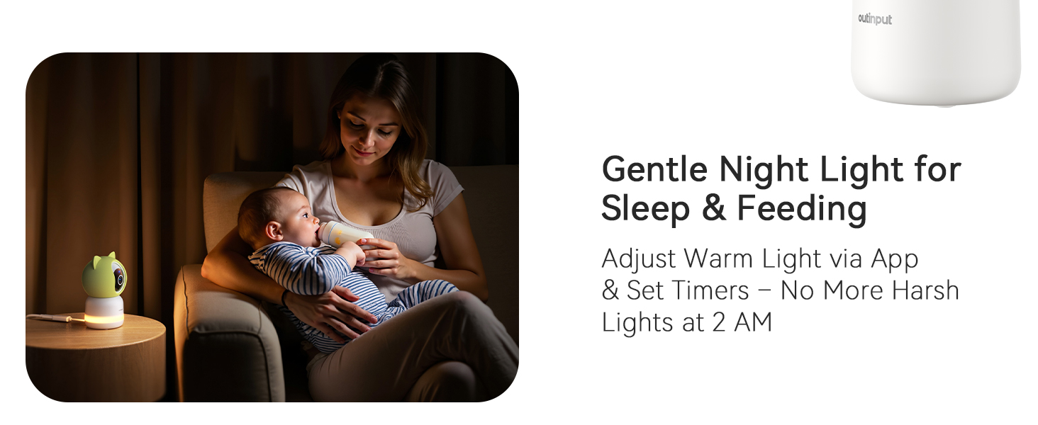 - 【2K 4MP QHD and 3x Zoom】Outinput baby monitors allows you to sees every detail day & night, capture your baby's little smile that suddenly appears when sleeping, or the turning over detected by invisible infrared night vision at night. 3x digital zoom brings you closer to your baby's steady sleep rhythm without having to enter the nursery