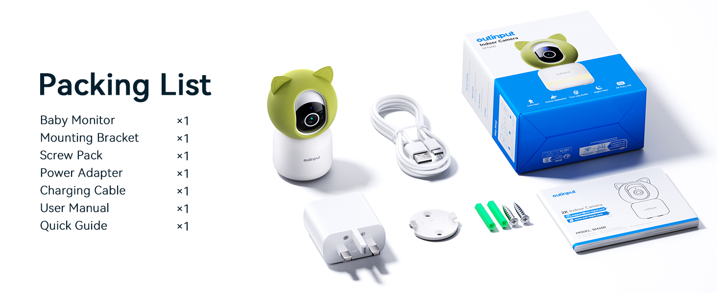 Outinput 2K 4MP Smart Baby Monitor – 355° PTZ WiFi Baby