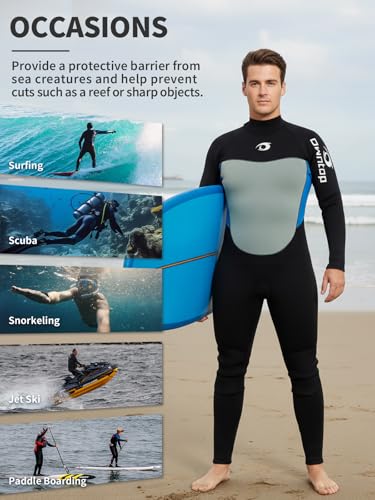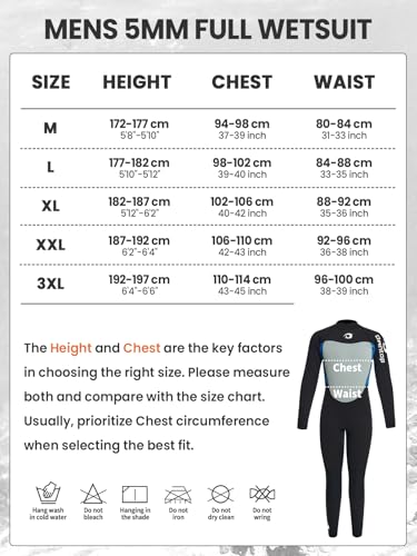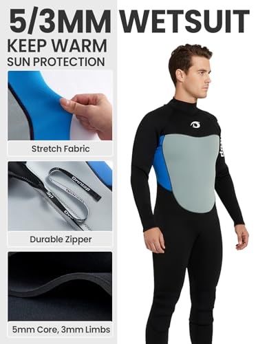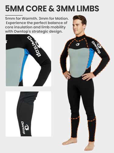 Owntop 5mm Wetsuit for Men | Full Length Winter Wetsuits | UV50+ Sun Protection Warm Wet Suit | 5/3mm Back Zip Diving Surfing Sui