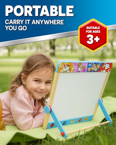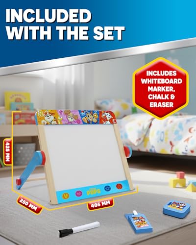 Paw Patrol Kids Tabletop Easel — 2-in-1 Double-Sided Chalkboard & Whiteboard Drawing Board for Children, Portable Art Station 30 × 25 × 20 cm
