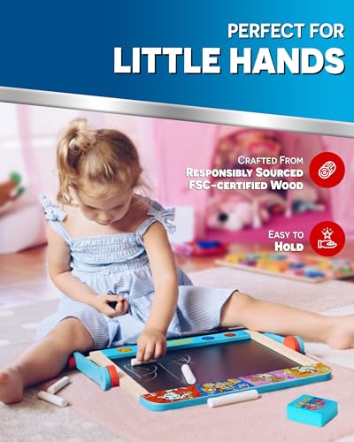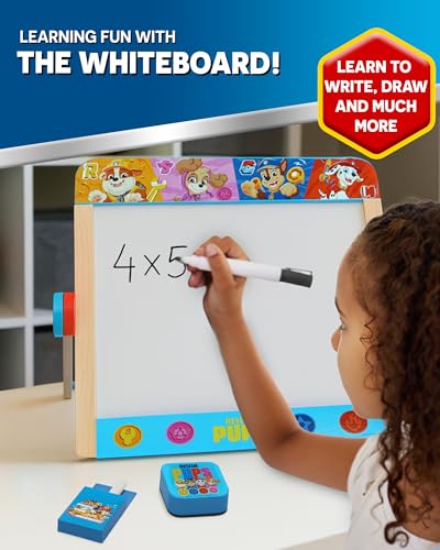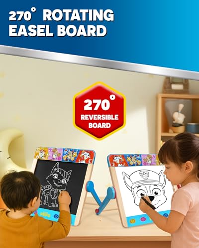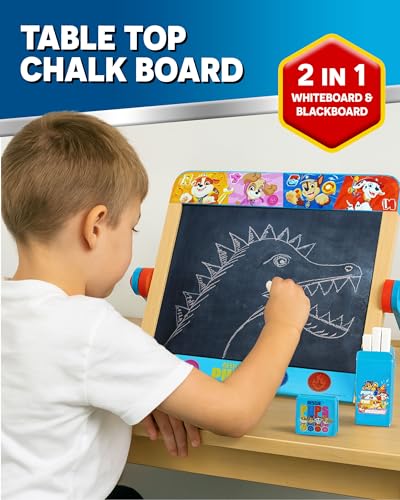 2-in-1 Chalkboard & Whiteboard: This PAW Patrol tabletop easel offers a chalkboard on one side and a dry-erase whiteboard on the other — perfect for drawing, writing, doodling and learning.