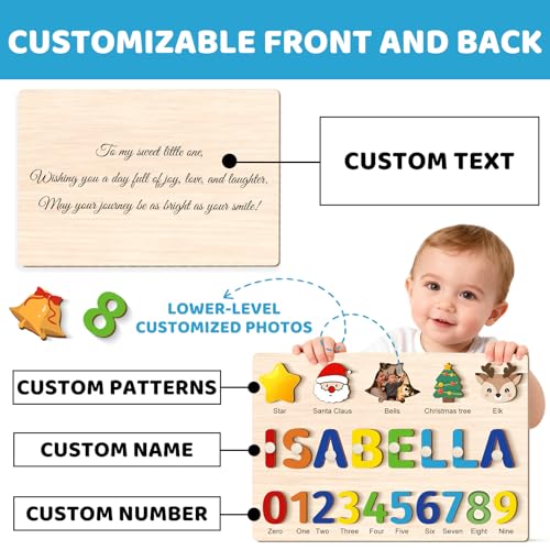 Personalized Name Puzzle for Children | Custom Name Puzzle for 1-3 Year Olds, with Engravable Back, Suitable for Personalized Gifts for First Birthday and Christmas