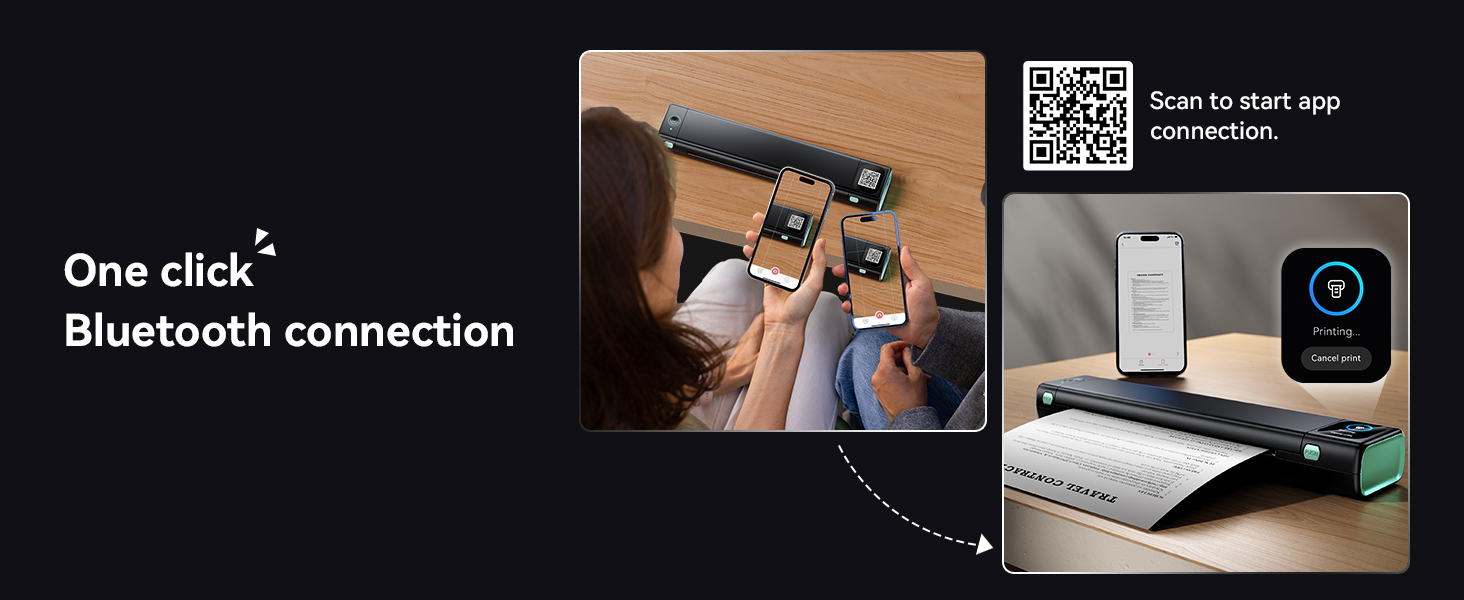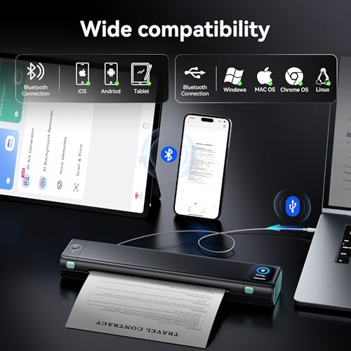 Bluetooth Wireless Printer: Compatible with iPhone, Android Phone, iPad, Tablet via Bluetooth. You can print documents, photos, websites anytime, anywhere from your phone. You can also use the USB-C cable to connect your laptop and computer for printing. (Note: Laptop and computer only work with USB port, you need to download the driver first)