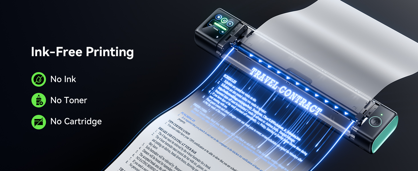 Thermal Printer: This printer has a thermal technology that allows printing without cartridges or consumables and prevents contact with the ink, No replacement of consumables, you can also save your printing costs
