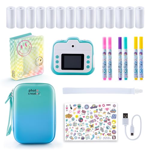 - KIDS INSTANT CAMERA + MEMORY: A fun, 12mp digital camera for kids that includes a built-in thermal printer so you can print your photos instantly with no ink or drying time required! A 4GB micro-SD card is included so there's loads of storage to save videos & photos too!