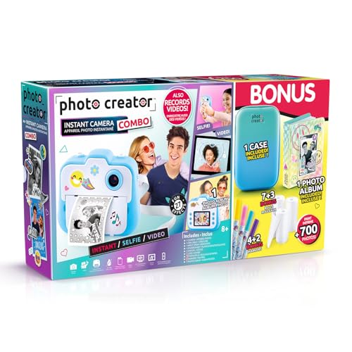 Get ready to capture unforgettable moments with this stylish instant camera! Take awesome photos and videos, print and personalise over 250 instant prints, and have endless fun creating memories with your friends! This 12MP digital camera is packed with cool features, try 20+ fun photo filters and effects, set the shutter timer for perfect group selfies, record videos, and snap the best selfies ever with the built-in selfie lens! Store your camera safely in the camera case and show off all of your photos in the photo album! Everything you need: a 4GB micro-SD card, 4 paper rolls, and a USB charger cable. Snap it. Print it. Make it yours!