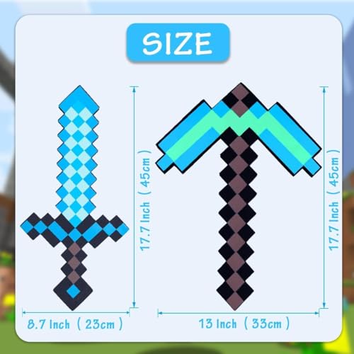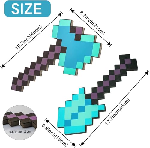 Foam Construction: Crafted from soft lightweight foam materials, these pickaxe sword toys provide completely play experiences for children while serving as ideal rewards, prizes, and imaginative play accessories
