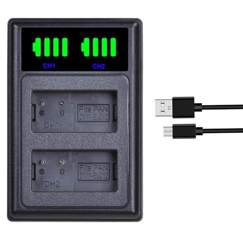 Pickle Power 2-Pack DMW-BLC12E DMW-BLC12 Battery and Charger for Panasonic Lumix DMC-FZ200 FZ330 FZ300 FZ2500 G7 G5 G6 G90 G95 GH2 GX8 G85 DC-FZ1000 II, FZ1000