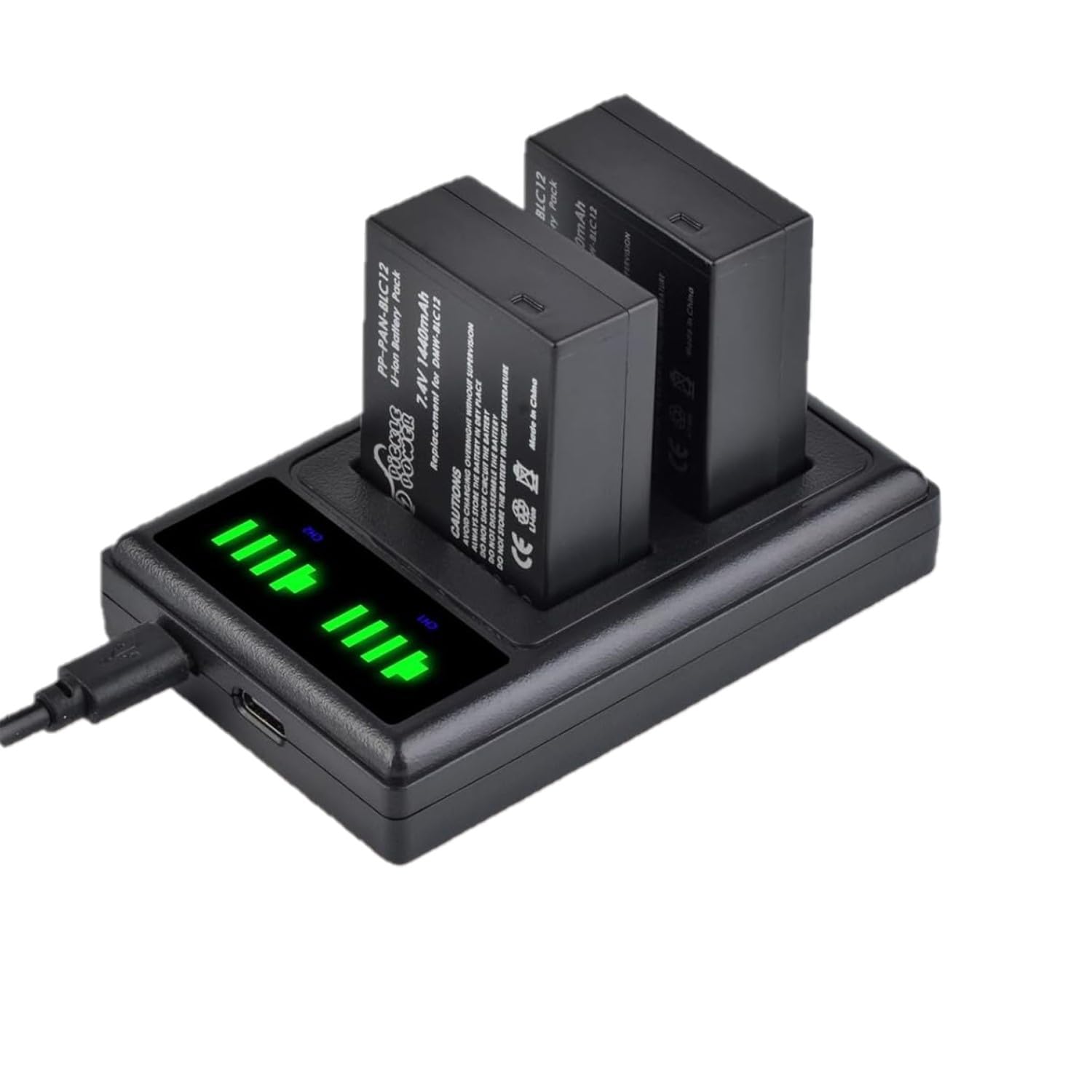 Pickle Power 2-Pack DMW-BLC12E DMW-BLC12 Battery and Charger for Panasonic Lumix DMC-FZ200 FZ330 FZ300 FZ2500 G7 G5 G6 G90 G95 GH2 GX8 G85 DC-FZ1000 II, FZ1