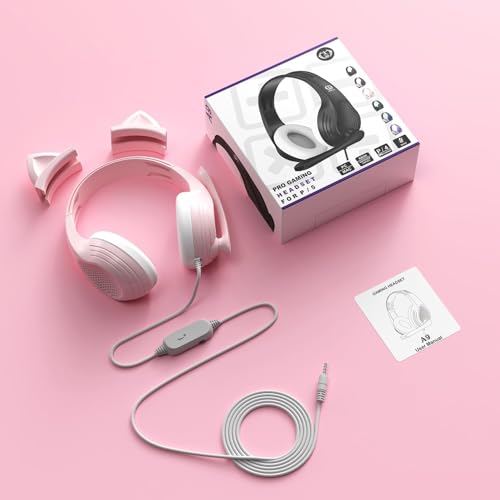 Pink Cat Ears Gaming Headset – Over Ear Wired Stereo Sound Headphones with Noise Cancelling Mic, Comfortable Earpads – Compatible with PS5, PS4, Xbox One, PC, Mac, Laptop & Gaming Consoles