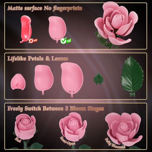 NO BURDEN PROTECTION: Replace flowers with high-quality building blocks, fearless of the passage of time, and always maintain the rich colors of the first bloom. No need for watering and care, bringing you a long-lasting romantic and burden free decoration experience.