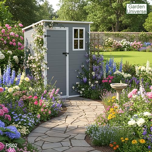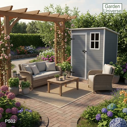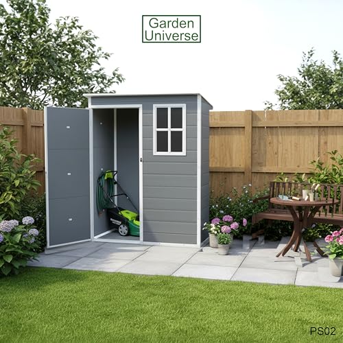 Keep your outdoor space organised and clutter-free with the Garden Universe Plastic Garden Shed. This 5x3ft shed is the perfect compact storage solution for any garden, patio, or balcony. Made from durable, weather-resistant plastic, it’s designed to withstand the elements without rusting or rotting — making it a reliable, long-lasting alternative to wooden sheds. The built-in floor panel keeps your belongings raised above damp ground, while the pent roof design ensures efficient rainwater drainage. Ideal for storing garden tools, lawn equipment, outdoor cushions, hoses, cleaning supplies and more. With its neutral grey finish, it blends seamlessly into any outdoor setting. Whether you’re an enthusiastic gardener or simply need more storage space, this shed delivers strength, practicality, and year-round protection for your essentials.