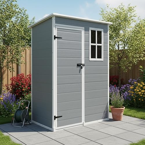 Plastic Garden Shed 5' x 3' Pent Roof Storage Box Grey Garden Shed with Floor Bike Storage Outdoor Storage Weather-Resistant Grey Garden Storage PS02