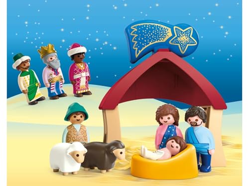 **Playmobil Junior Nativity: Christmas Magic** The Playmobil Junior Nativity Scene is perfect for children aged 12 months and up, offering an educational and symbolic experience that introduces the magic of Christmas through play. **Safety and Adapted Design** The Playmobil Junior Nativity Scene design includes safe materials, free of sharp edges, with figures of the Holy Family suitable for little hands. **Educational and Sensory Benefits** Stimulates symbolic and narrative play, promoting the development of vocabulary and motor skills, bringing children closer to the Christmas tradition. **Compact and portable size** The Playmobil Junior Nativity Scene is compact and easy to carry, ideal for teaching the meaning of the crib and establishing a family tradition.