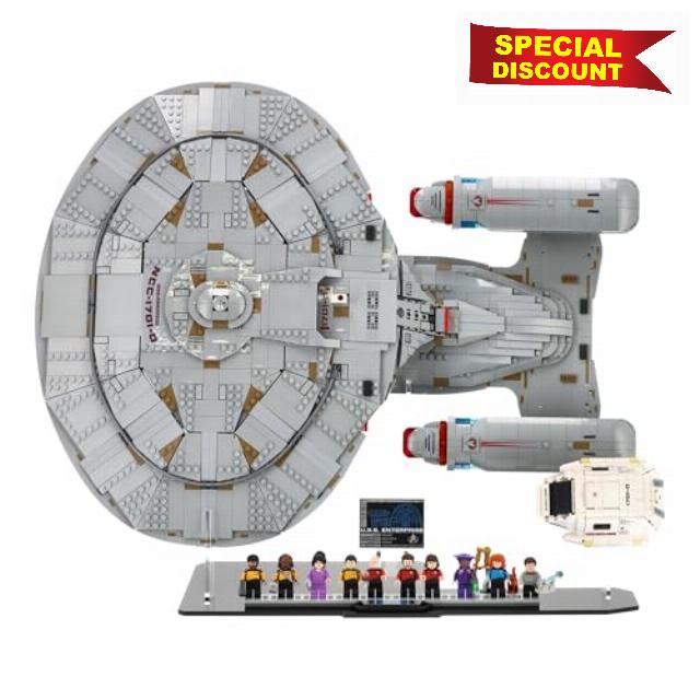 Plexico Display Case Compatible With Lego Star Trek: U.S.S. Enterprise NCC-1701-D – (Main Set + GWP Holder Add-On)