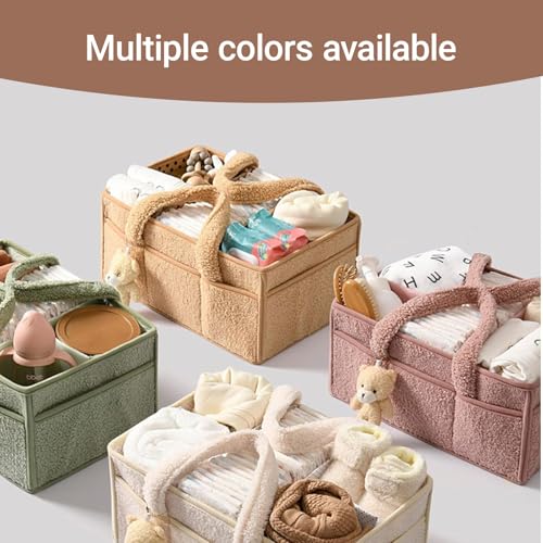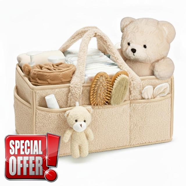 Plush Sherpa Nappy Caddy Organiser – 13 Compartments with 2