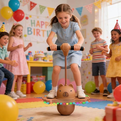 pogoes Jumper with Handle and Ball Pump, Jumpingball Toy For Kids, Capybara with Pump and light, Fun Balance Jumping Trainingtoy for Boys Girls Indoor Outdoor Active Entertainment, Workout Toys