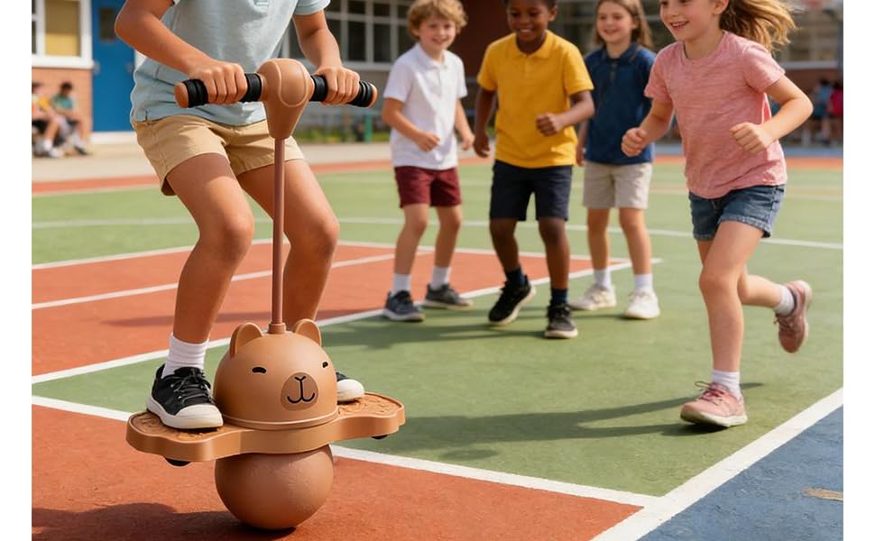 Bounce Balls with Handles for Kids are designed to combine fun and exercise in a single engaging product. These inflatable balance toys come with a pump for easy setup and feature a convenient handle that ensures a secure grip for children. Ideal for both boys and girls, these bounce balls are ideal for elementary school kids and can be used indoors or outdoors. Whether at home, in the apartment, yard, park, or during interactive games at parties, they provide hours of entertainment while promoting physical activity. The playful capybara design adds a funny and appealing touch, making it an excellent choice for Christmas or birthday presents. Durable and versatile, these bounce balls support active play and exercise in various settings, offering a delightful way for kids to stay entertained and healthy. Specification Product name: Bouncing ball with handle (Ball color is random) Product size: 36x65cm/14.1×25.5inch Material: PP, PVC ball Weight: 960g Applicable age: 3 years old and up List 1*Bounce ball with handle/bouncing ball with light and handle (with 3 button batteries) 1*Pump Note: 1. Due to lighting effects and display angles, there may be color differences in the product. 2. Due to manual measurement, there may be errors in product size, please understand.