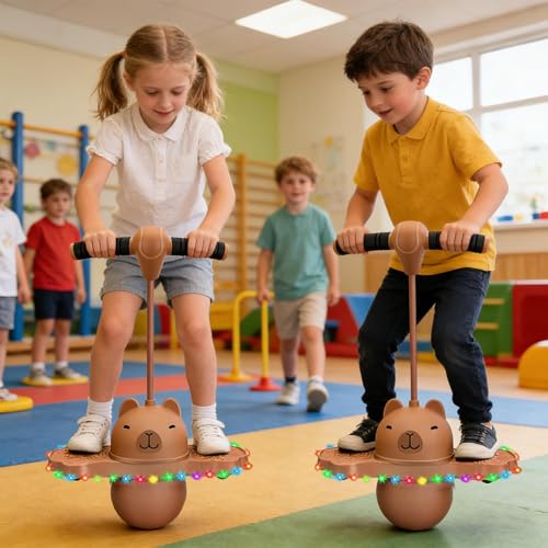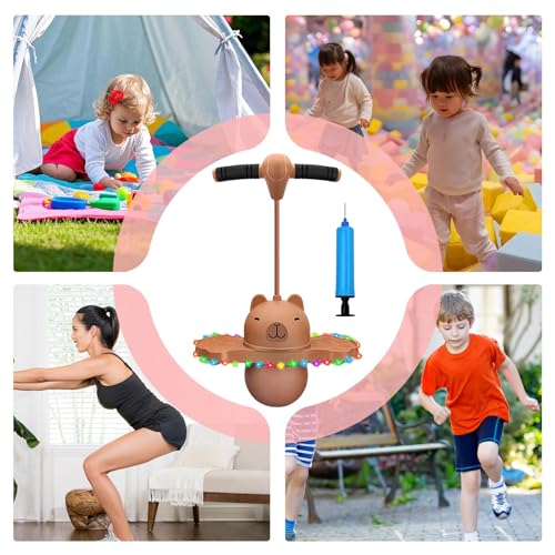 Pogos Jumper With Handle And Ball Pump, Funny Capybara Shaped High Bouncing Ball Board, Kids Jump Balls Toy For Boys, Girls, Kindergarten, School (Random Balls Color) 36x65cm