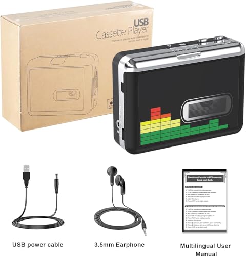 Portable Cassette Player to MP3 Converter – USB Cassette Digitizer with 3.5mm Headphone Jack, Auto Reverse Playback – No Computer Required