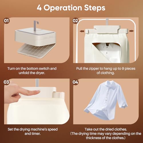 - 600W PTC Efficient Heating: Ditch the musty smell! Our Portable Electric Clothes Dryer features top-down constant heat and 360° bottom vents for even drying, penetrating every fabric layer. Smart overheat protection cuts power automatically. Comes with a 1.3m long power cord.