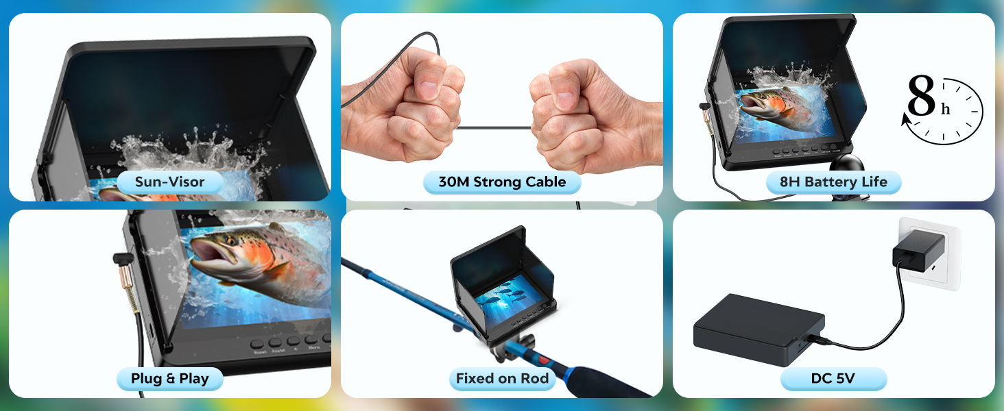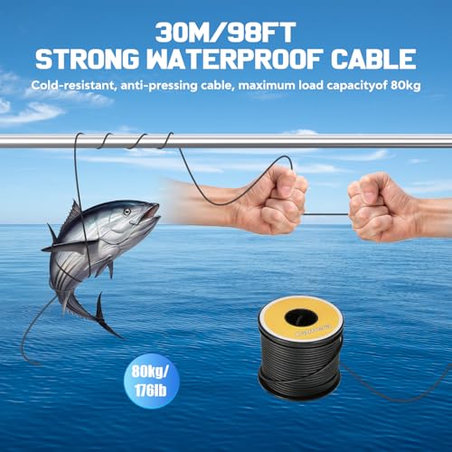 - Long and Sturdy Cable: The cable of the fish finder is 30M on site, which is convenient for you to use in deep water. It is cold-resistant, compression-resistant and corrosion-resistant; the maximum load-bearing capacity is 80KG, which is not afraid of big fish. Easy to Fix On The Fishing Rod: It can be fixed on the fishing rod by the bracket, you can operate more conveniently and get unexpected fun.