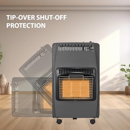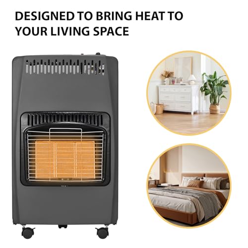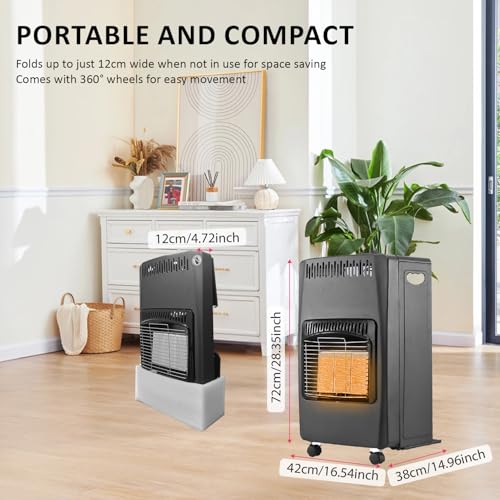 FOLDABLE & PORTABLE DESIGN: This lightweight gas heater features a compact foldable design, reducing to 1/6 of its size for convenient storage. Equipped with 4 swivel casters, it can be easily moved from room to room or used outdoors for flexible heating.