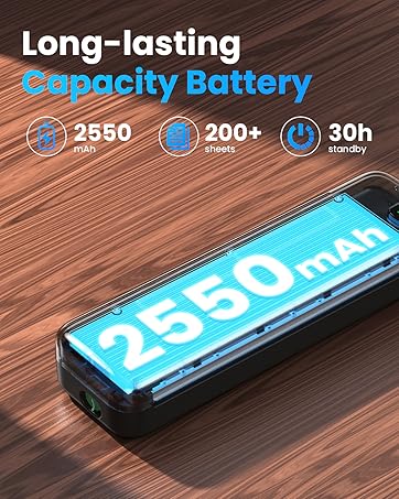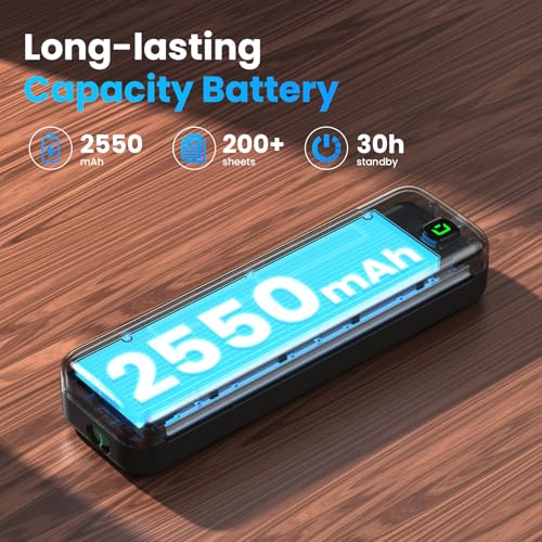 [Powerful 2550mAh Battery & Auto Power-Saving] This CyberPixel Bluetooth thermal Printer could print up to 300 pages per charge (varies by usage) with the built-in 2550mAh long-lasting battery. Features auto sleep mode to conserve energy, ensuring reliability for office, outdoors, homes, or all-day work.