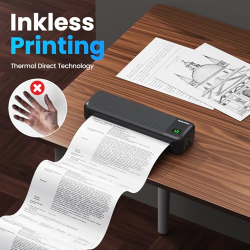 Portable Printer Wireless for Travel, Inkless Bluetooth Thermal Printer Supports A4 & US Letter, Mobile Printers Compatible with iOS, Android, Laptop for Office, Home, Portable Use (BLACK)