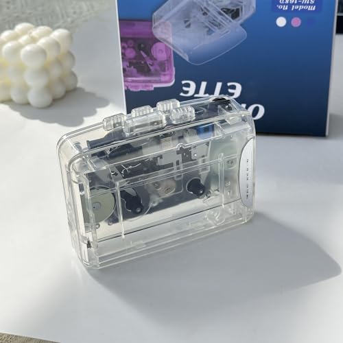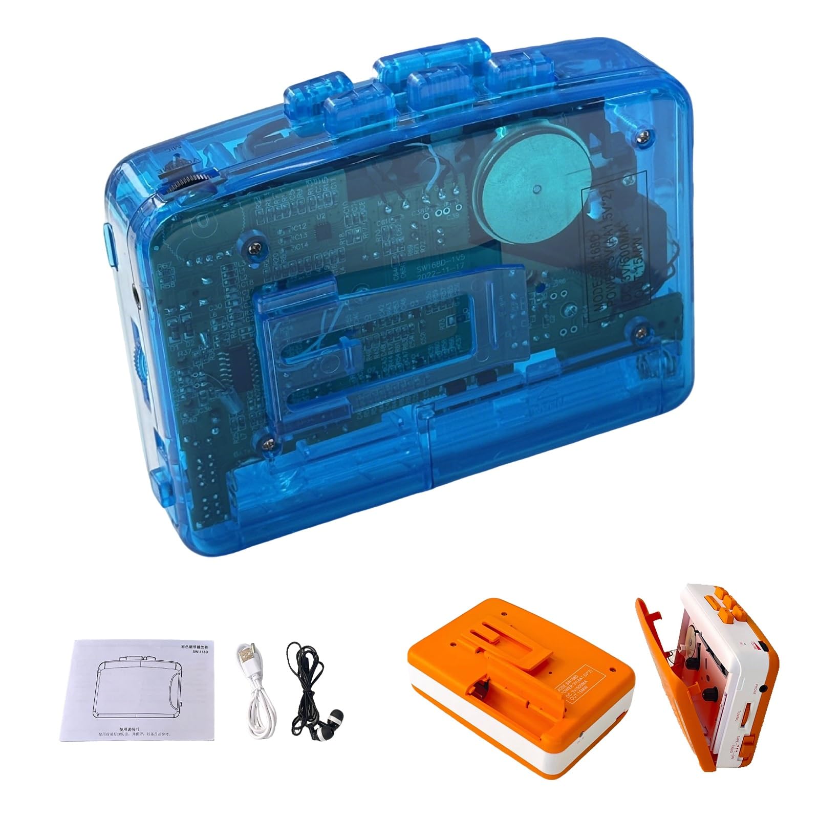 Portable Stereo Cassette Player, Retro Tape Machine, Multi-function Radio Recorder, Equipped with Headphones(Blue Clear)