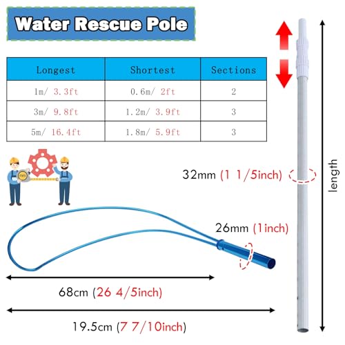 - Durable and Lightweight Design: Featuring a 32 mm diameter, this aluminum water rescue pole combines strength with ease of handling. Capable of supporting up to 250 kg, it ensures safety for users of all ages during emergency rescues.
