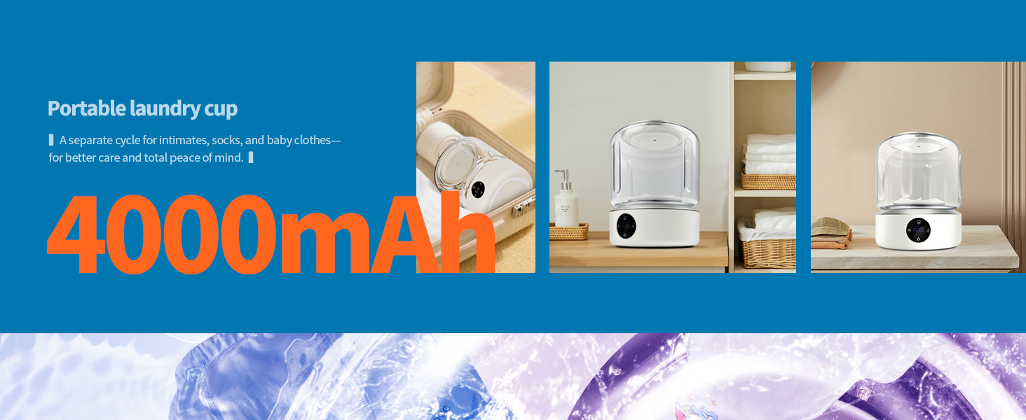 【Cordless & Rechargeable】 No power outlet? No problem. This mini washing machine features a high-capacity rechargeable battery that delivers long-lasting power—no need to stay plugged in, giving you total flexibility wherever you go.