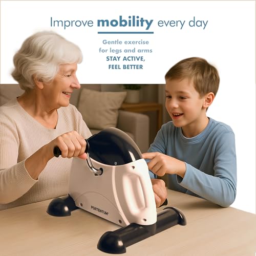 - PORTABLE PEDAL EXERCISER FOR ARMS AND LEGS – The pedal exerciser PORTENTUM is compact, stable and quiet; it allows you to train legs and arms while sitting at home or in the office. Adjustable straps and a non-slip base ensure comfort and safety with every use.