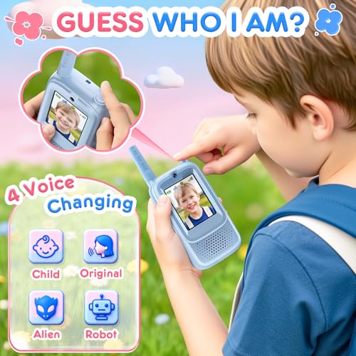 Pourbibi Video Walkie Talkies for Kids, Rechargeable Walkie Talkies, 1300 Feet Range with 4 Voice Effects,Christmas Birthday Gifts for Kids, Outside, Camping for Boys Girls Ages 3-12 High-Performance