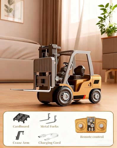 Premium Alloy Mini Rc Construction Set– Forklift, Excavator & Dump Truck, Mini Rc Excavator and Dump Truck for Kids & Adults (Gold -A)