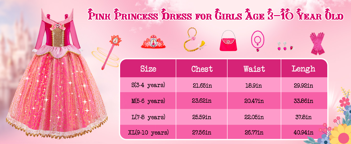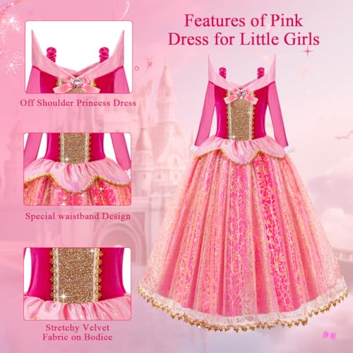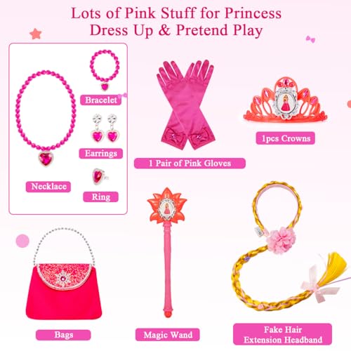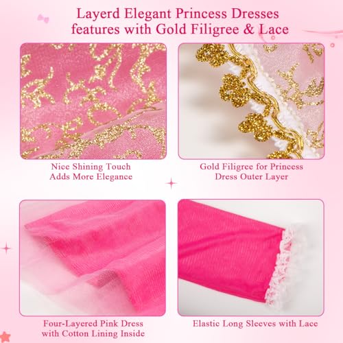 Princess Costumes for Girls, Light up Pink Princess Dress up Presents for Girls Age 3 to 10 Year Old, Fancy Dress for Kids & Toddlers Christmas World Book Day Costumes
