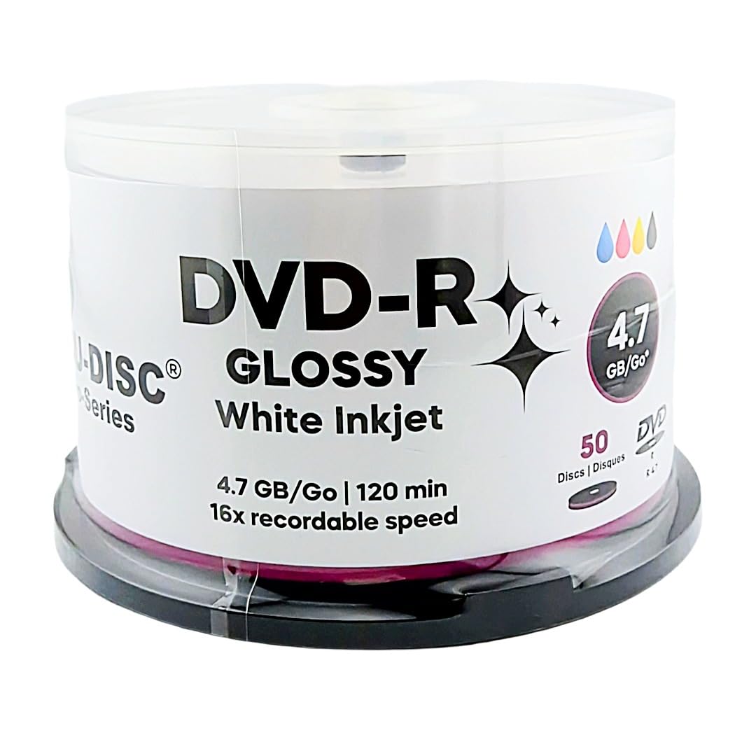 Acu-Disc Pro-Series Glossy Inkjet DVD-Rs combine dependable 4.7GB storage with a high-gloss printable surface engineered for vivid, sharp and professional disc artwork. The full-face hub-printable coating supports edge-to-edge printing, making it ideal for branded discs and client-ready media. Designed with a stable purple AZO-based dye, these discs offer reliable 16x recording performance for duplication, video production, backups and media distribution. Perfect for studios, creators and professionals needing premium print presentation and consistent burn quality.