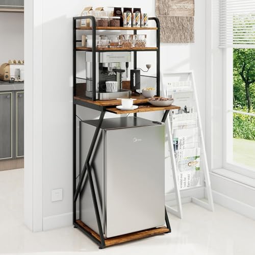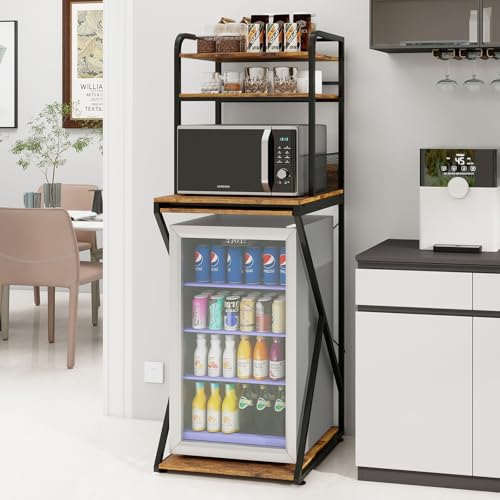 PUNCIA 4-Tier Mini Fridge Stand with Storage – Free Standing Refrigerator Cabinet Coffee Bar Organizer Microwave Oven Shelf Bakers Rack for Home Office Dorm Pantry Kitchen Apartme