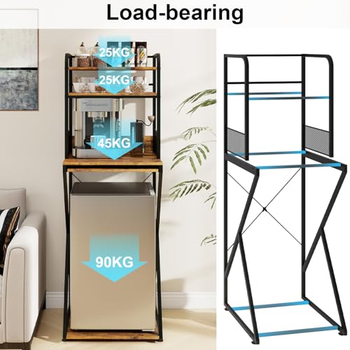 – : Built with thick boards, reinforced steel, and an X-frame structure, this microwave and refrigerator stand supports over 185kg. Strong enough for daily dorm use, long-term apartment living, or as a reliable home coffee station.