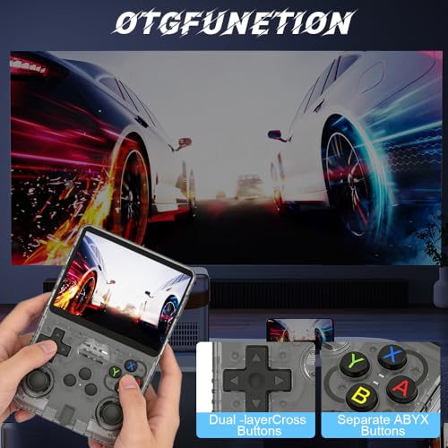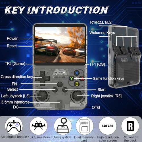 - Ergonomics: The R36s game console's body conforms to hand usage habits, with dual 3d joysticks and tactile directional buttons for precise control. The rear buttons feature a real spring design, offering sensitive rebound and effectively reducing hand fatigue during extended gaming sessions, resulting in a more comfortable operating experience for these handheld games consoles