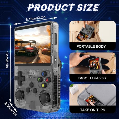 R36s Retro Handheld Game Console, Handheld Games Consoles with 3.5 Inch Ips Display and 20,000+ Classic Games, Portable Pocket R36s Game Console for Teens And Adults (Black Translucent-64G)