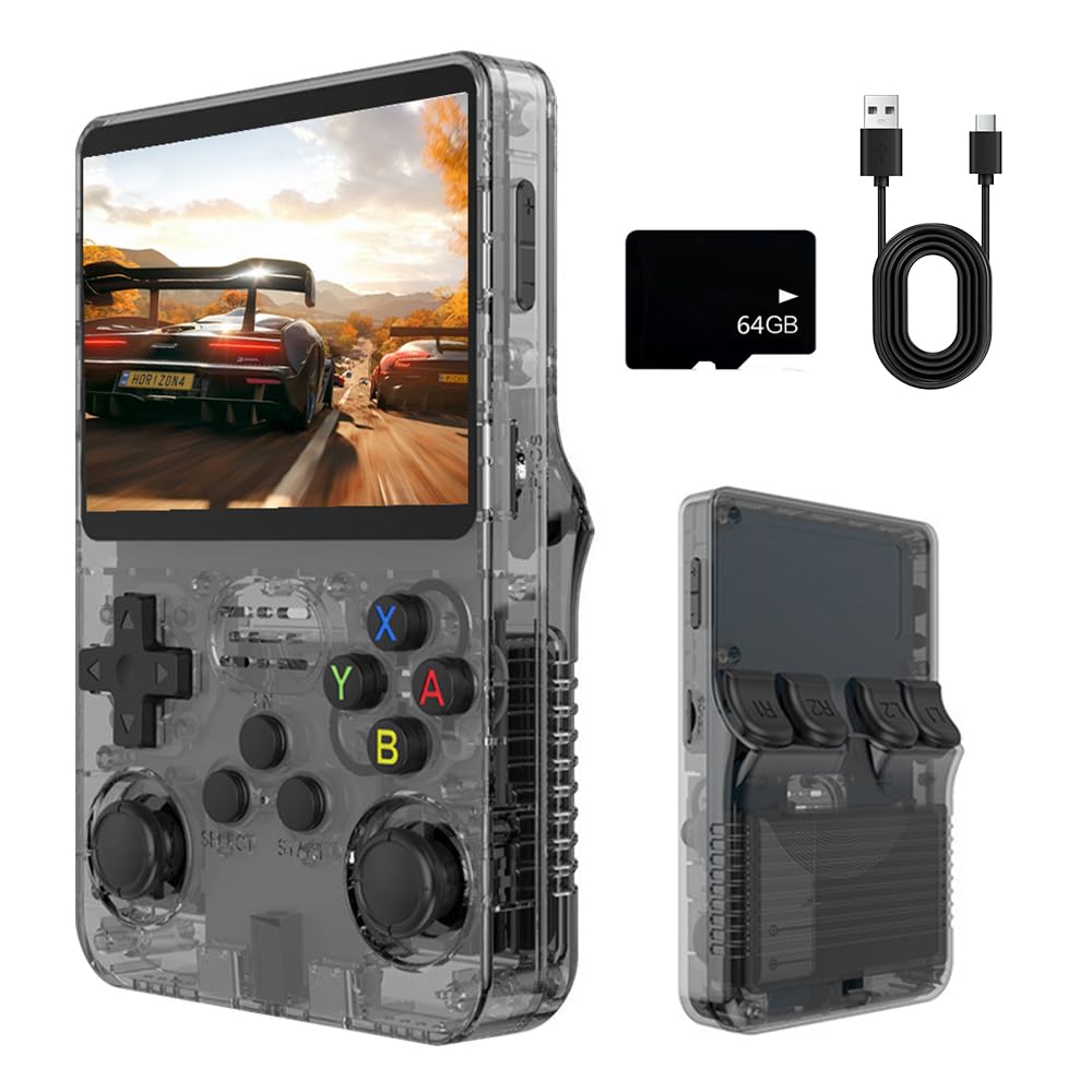 - Massive Game Library: The R36s retro handheld game console comes pre-loaded with over 20,000 classic games. With a 64GB TF card, a vast library of games is readily available, eliminating worries about insufficient storage space. This R36s game console also supports multiple emulators and languages, allowing for immersive gaming anytime, anywhere – while traveling, waiting in line, or relaxing at home