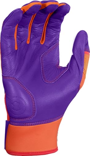 Bring serious style and performance to the plate with the Rawlings Workhorse Funburst Batting Gloves. These gloves feature the same trusted design as the classic Workhorse, now with a bold new gradient Funburst color that adds style to every swing. Made with ultra-soft, full-grain leather, they offer a premium feel and top-notch control. A second layer of reinforced leather in high-wear areas increases durability, while the neoprene cuff and lycra back of hand ensure a secure and flexible fit. Finished with rolled edges and double stitched for a professional look, Funburst Workhorse gloves deliver elite performance with undeniable style.