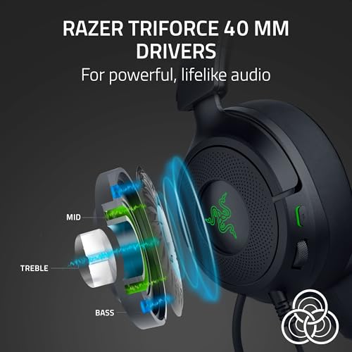 - Razer TriForce 40 mm Drivers – for powerful, lifelike audio: Our patented 3-part driver delivers clear highs, rich mids, and deep lows for an immersive, dynamic experience—whether tracking enemies, enjoying your favorite playlist, or tuning into a live stream.