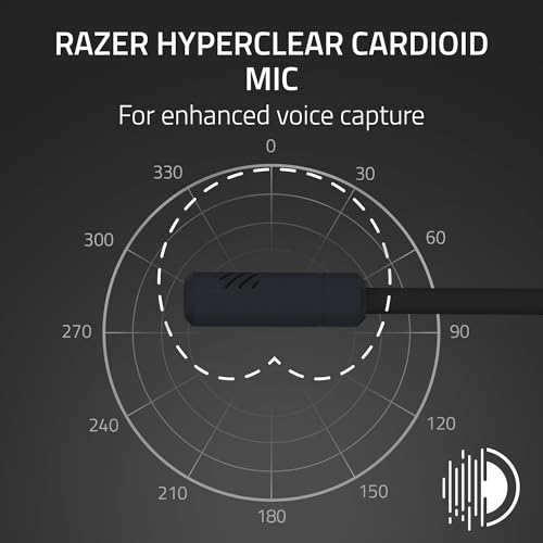 - Razer HyperClear Cardioid Mic – for enhanced voice capture: Speak with clarity using a mic with an improved pickup pattern that focuses on your voice and reduces background noise, ensuring you’re always heard loud and clear during team play or casual chats.