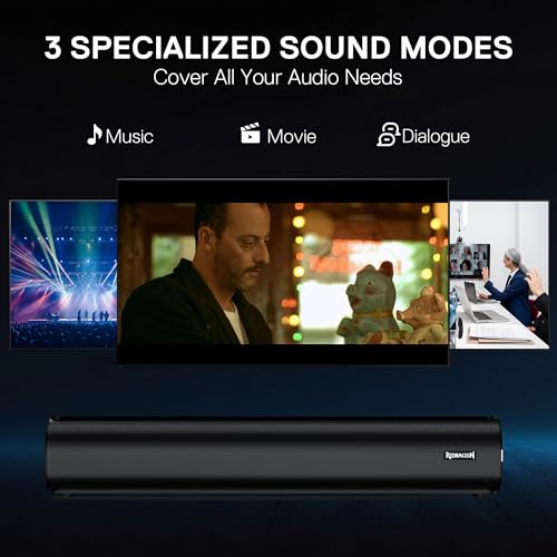 Redragon GS821 Computer Soundbar for Desktop, Hi-Fi Stereo PC Speaker with BT 5.3, Optical/HDMI ARC/AUX/USB Connection, 3 EQ Modes, Includes Remote Control, Gaming Speakers for PC, Laptop, Table
