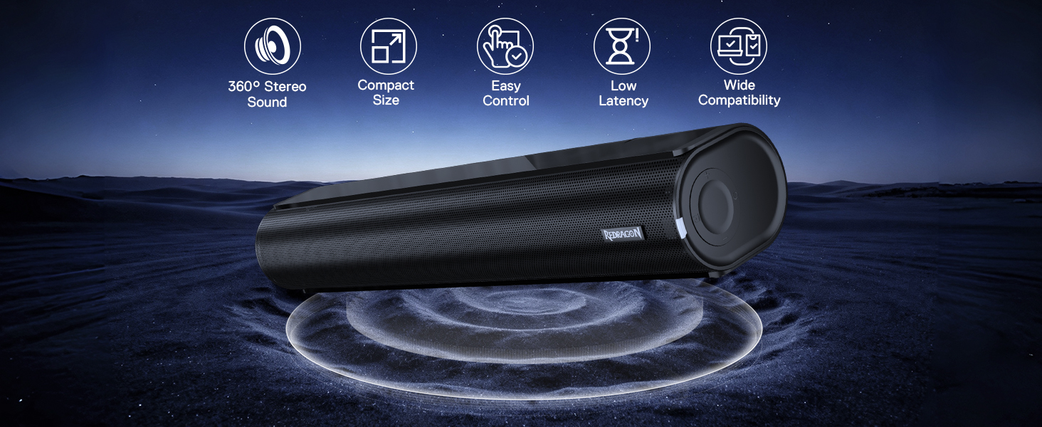 - Hi-Fi Stereo Sound Quality: Experience immersive, high-fidelity audio with the Redragon GS821 computer soundbar. Designed with dual drivers and dual diaphragms, this PC Speaker delivers crystal-clear vocals, rich instrument details, and dynamic surround sound that brings your favorite movies and games to life. Enjoy every beat and every whisper with stunning clarity